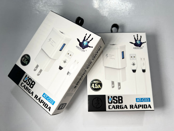 Nuestro Cargador American V8 4.5A es de la más alta calidad, ofreciendo una carga rápida y eficiente para tus dispositivos. Con una potencia de 4.5A, podrás cargar tus dispositivos en un tiempo récord, manteniendo su batería en óptimas condiciones. ¡No pierdas tiempo esperando a que tus dispositivos se carguen lentamente, con nuestro cargador tendrás la mejor experiencia de carga!