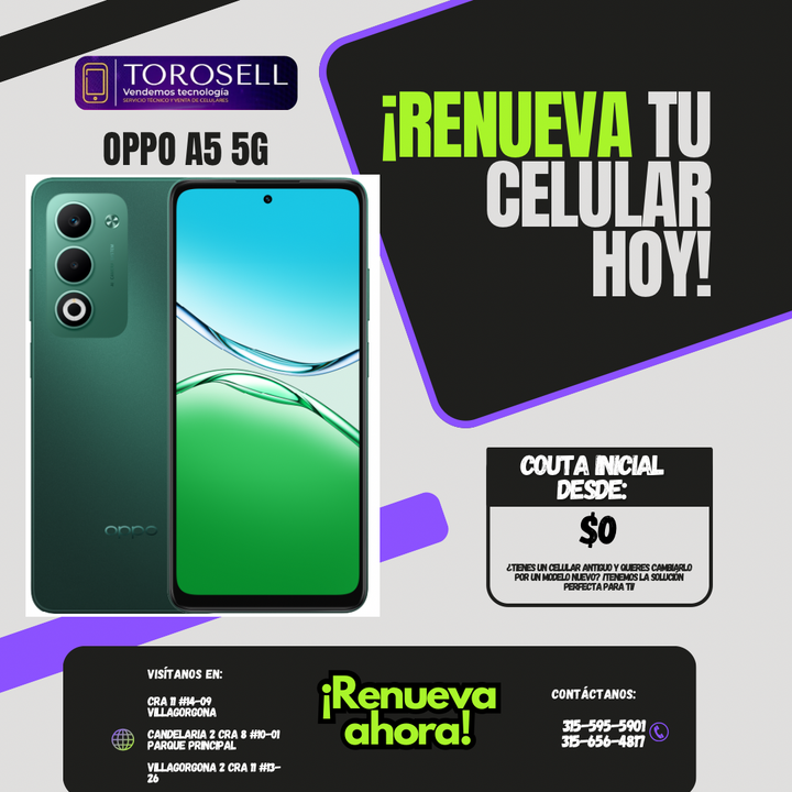 Descubre un mundo más rápido con el OPPO A5 5G. Con una memoria RAM de 8 GB y almacenamiento de 256 GB, este teléfono inteligente te permite almacenar más y ejecutar aplicaciones más rápidamente. Además, la tecnología Oppo a5m te garantiza una experiencia de visualización más clara y vibrante en su pantalla de alta definición. ¡Aumenta tu productividad con este dispositivo de alta gama!