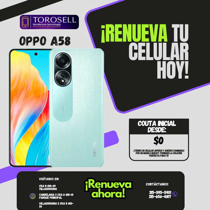 Disfruta del rendimiento excepcional del OPPO A58 con una pantalla LCD de 6,72", resolución Full HD+ y 180 Hz de respuesta táctil para una experiencia visual y táctil incomparable. Con un potente procesador Helio G85 y 6GB de RAM, junto con 128GB de almacenamiento expandible, podrás disfrutar de un rendimiento sin interrupciones. Además, captura imágenes impresionantes con su cámara trasera de 50 MP y su batería de 5.000 mAh con carga rápida de 33W. ¡Descubre todo lo que el ColorOS 13.1 y Android 13 tienen para ofrecer en este dispositivo moderno y elegante!